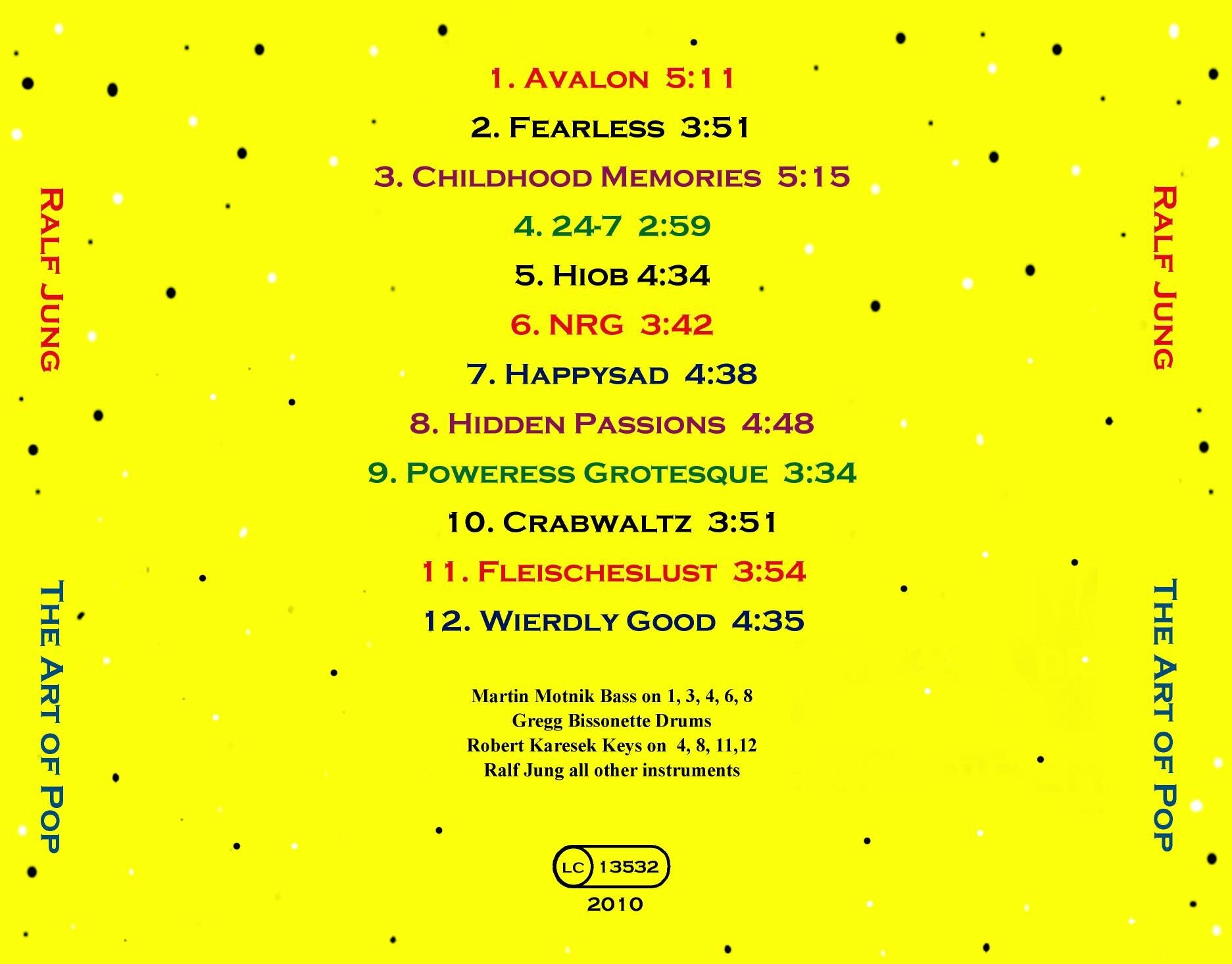 Avalon, Fearless and Wierdly Good were written while recording this album. Older songs are Childhood Memories, SRV, Crabwaltz and Happysad for example.