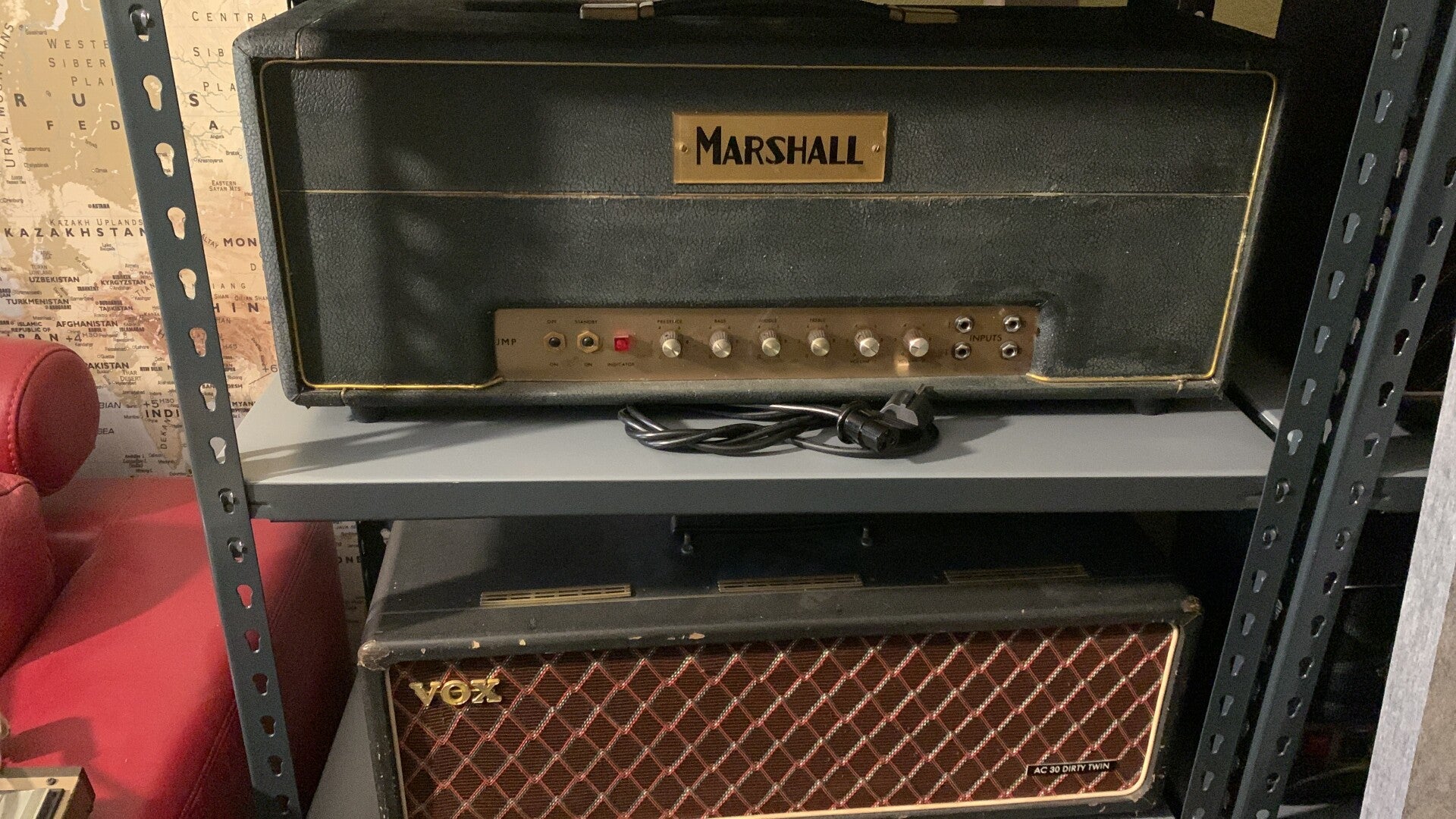 Unfortunately that amp is under a cover on this picture but it is a Superbass all original from 1968. I had a few Superleads from early 70s but it was until I heard a real Plexi to know the real deal and why there is so much fuzz about these amps. One of my most treasured amps. If you hear softer crunchy rhythms on my recordings it is this amp or the Metro